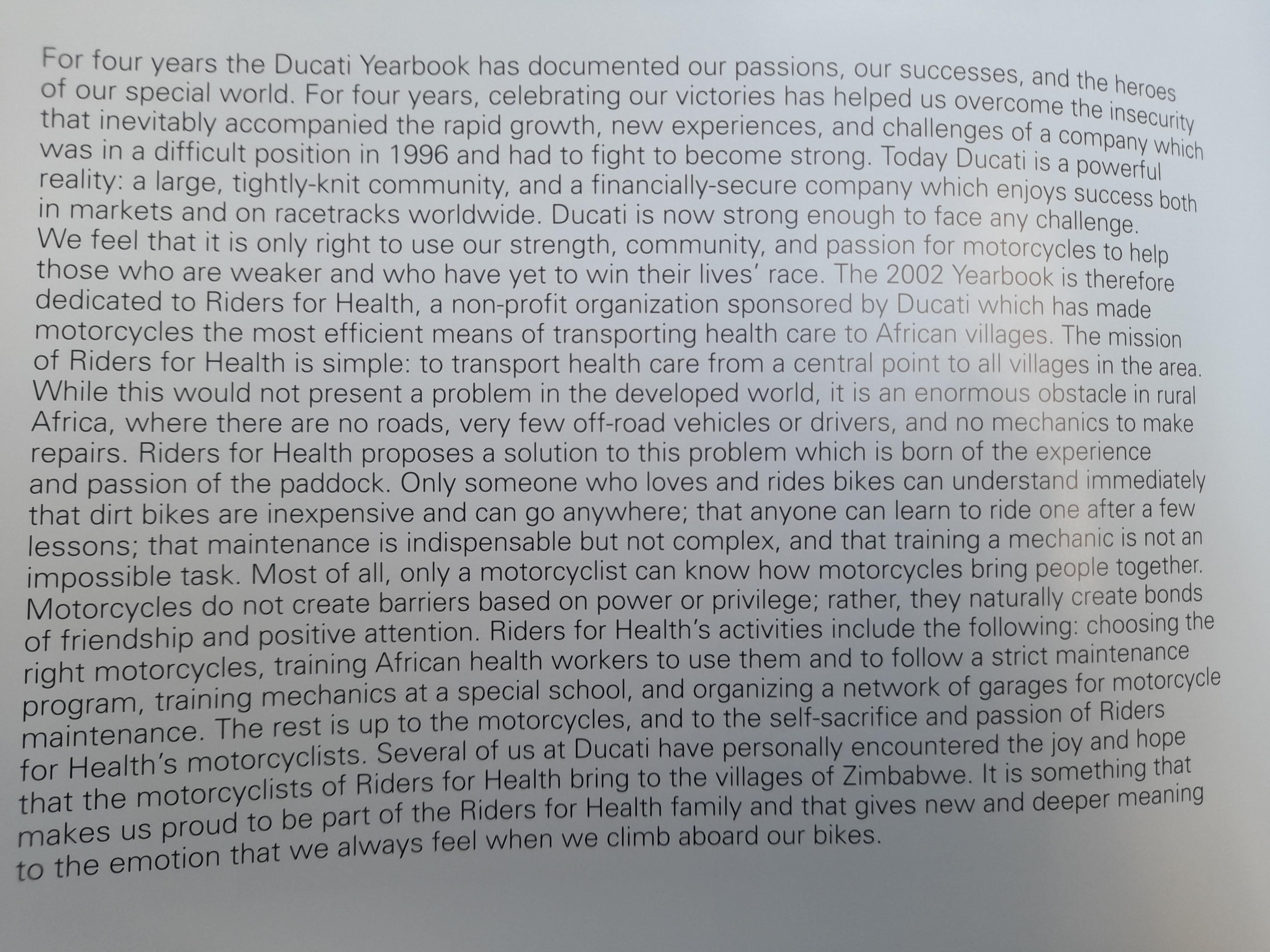 Ducati 2002 Yearbook - Riders for Health - The Gambia - Numbered LTD Edition #1490