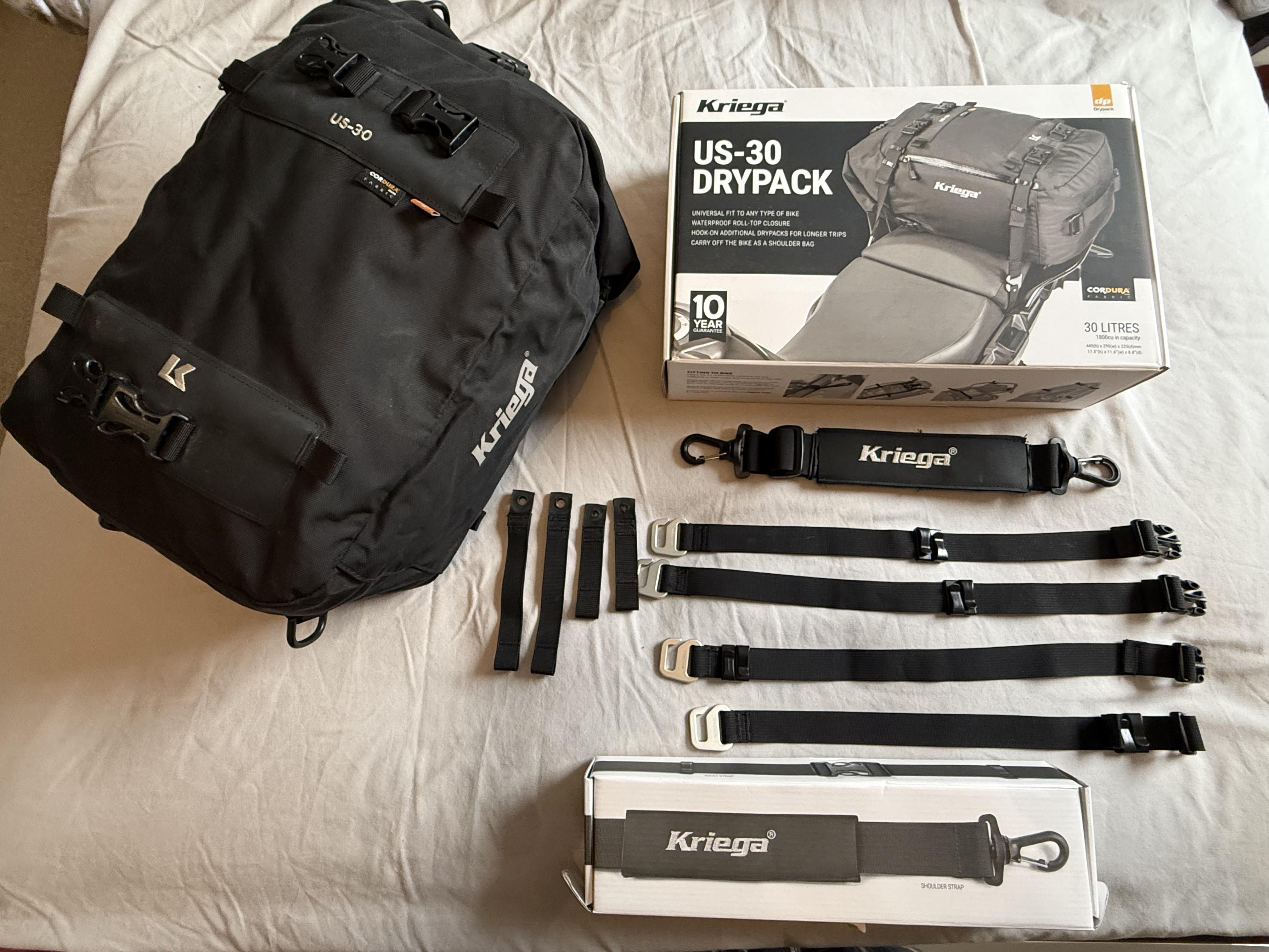 For sale Kriega US30 pack used once for a tour of Europe on my 1260s Diavel. Comes with all straps including fixings for 1260s or X Diavel. Cost £188 new looking for £80 + post and packing or collection.
